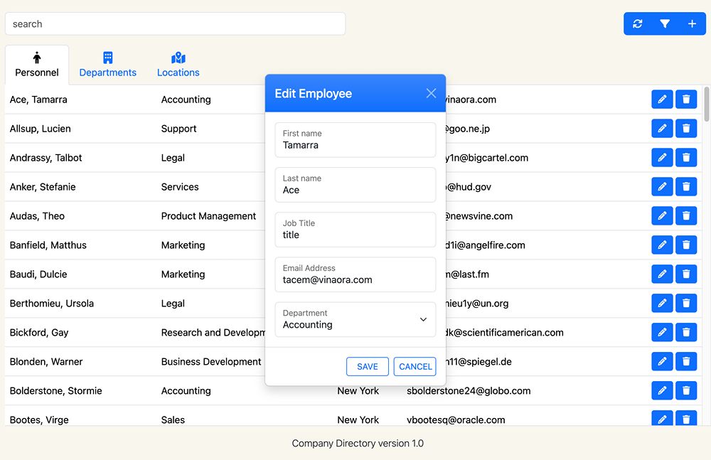 This application provides the user with an interface for carrying out CRUD operations stored on a MySQL database.