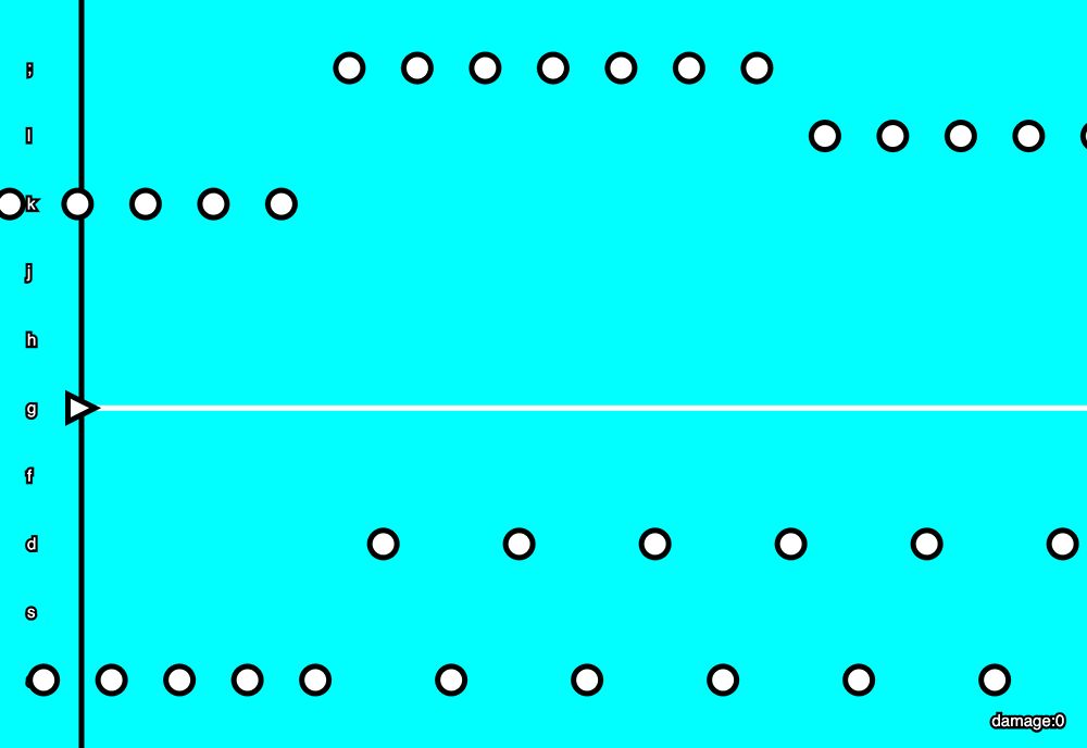 A work in progress game that is a mashup of a rhythm game and a side scrolling shooter, built using the p5.js Javascript framework.
